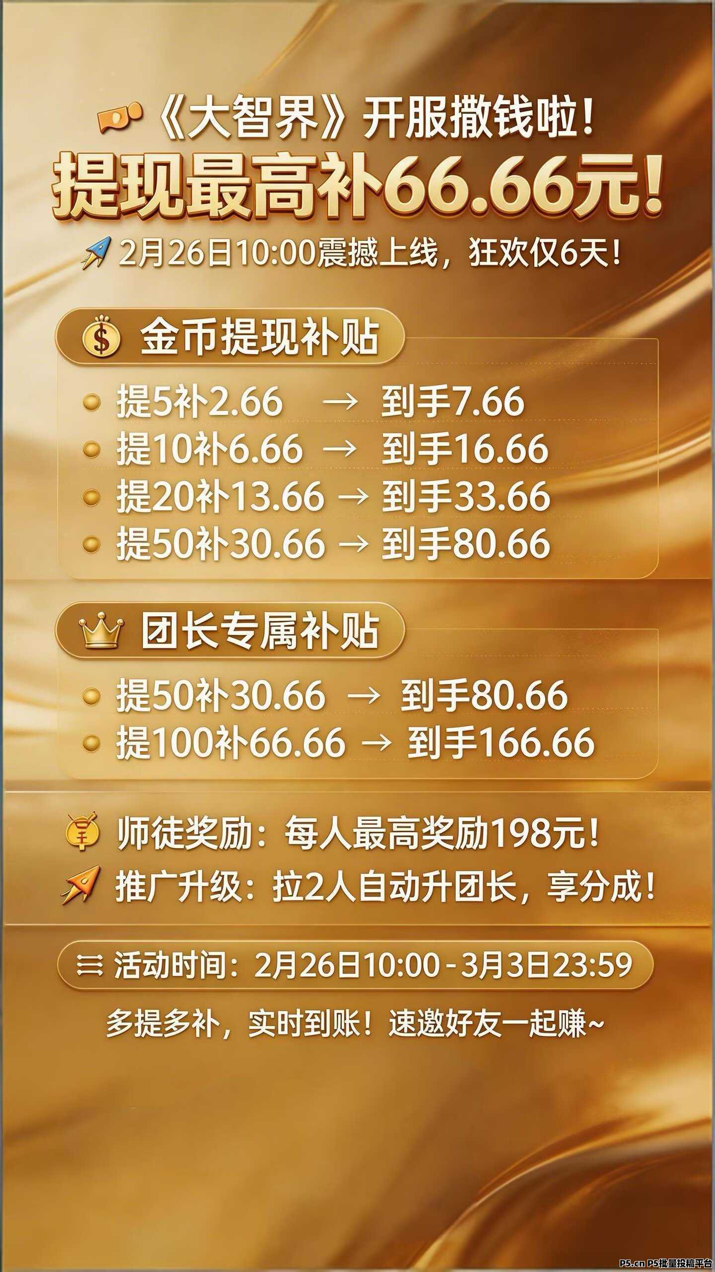 新广告平台红尾鹤刚刚上线放水中,自玩金币提现,提5自动到账7.66,提10自动到账16.66,提20自动到账33.66,提50自动到账80.66,团长余额提现,提50到账80.66,提100到账166.66,凡扫我码下载的兄弟全部扶持:提5反1,提10反4,提20反4,提50反5,提100反10,直接私我领取,一条线可全部直接开高团v4,要开团的直接私发id给我就行